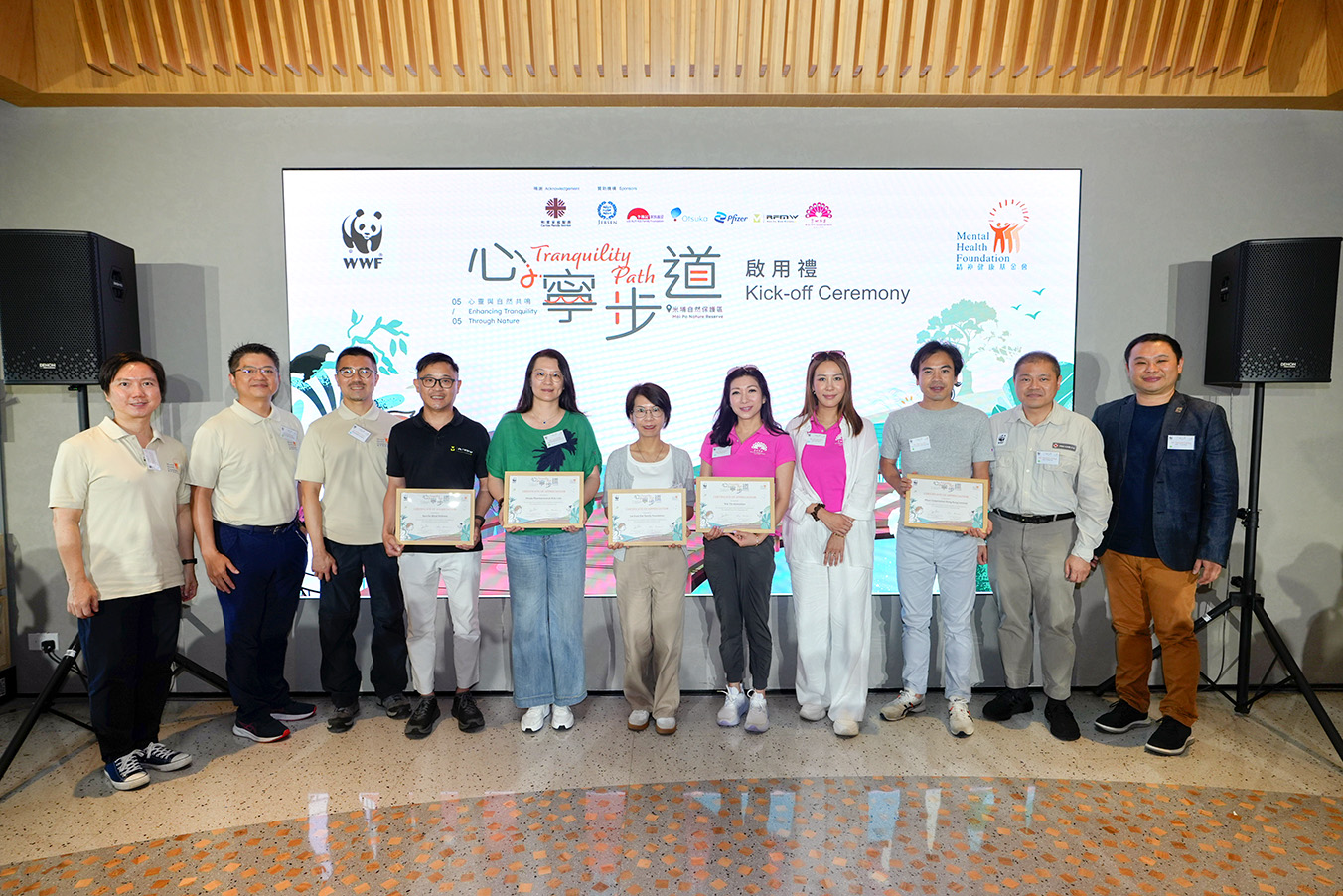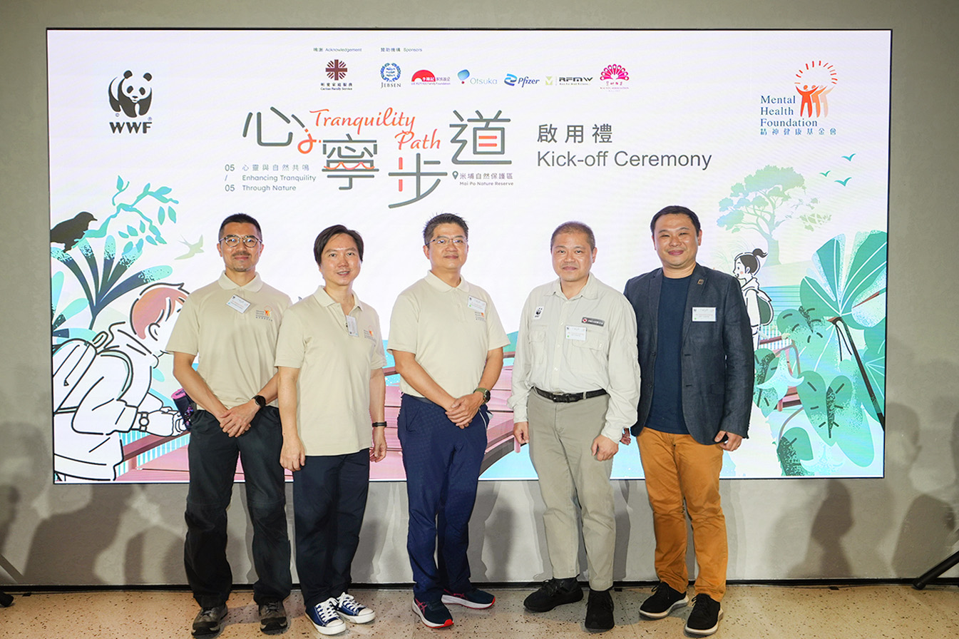 精神健康基金會今日於世界自然基金會賽馬會米埔斯科特訪客中心舉行「心寧步道」啟用禮及步道體驗活動,活動主題為「心靈與自然共鳴」。主禮嘉賓包括精神健康基金會主席劉英傑醫生、副主席黃敏信先生、世界自然基金會香港分會營運總監梁志偉先生以及教育總監梁恩銘先生。